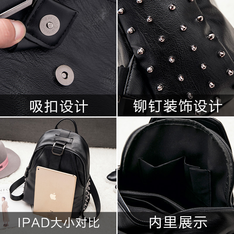 鉚釘雙肩包女韓版pu時尚個性百搭歐美風女士大包包新款潮背包