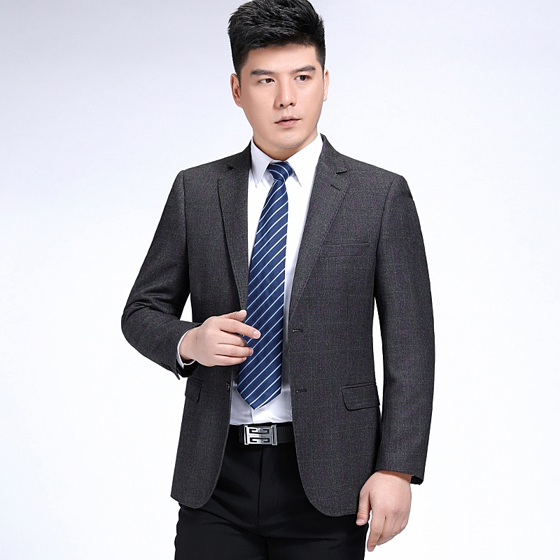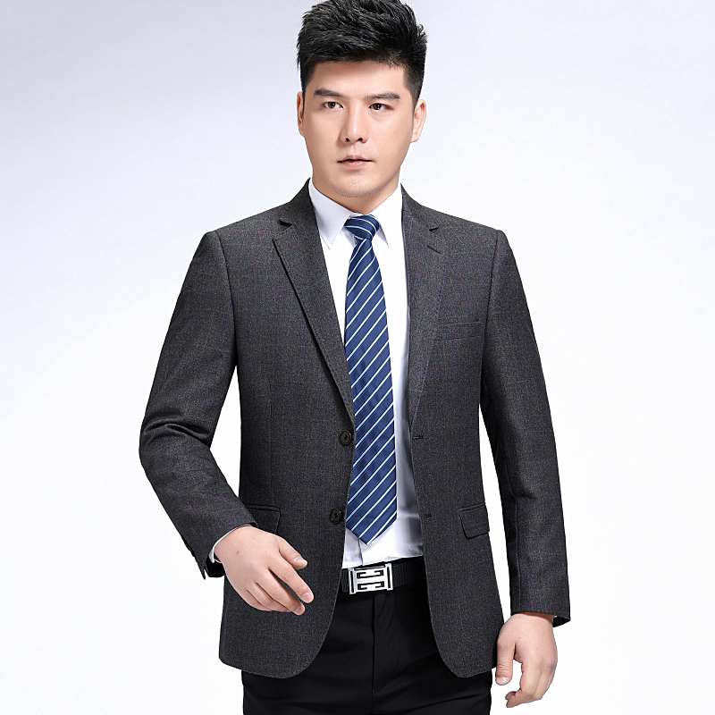 / 秋裝品牌中年男士修身羊毛西服商務休閑男裝格子單件西裝外套上衣