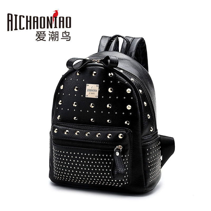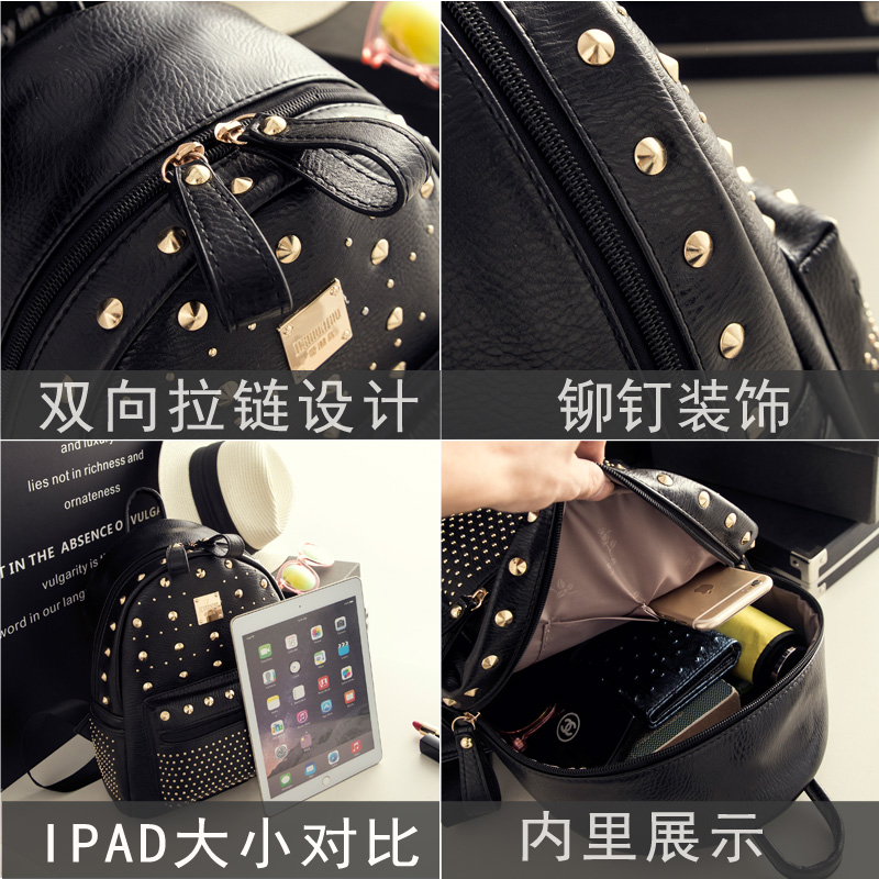 女士雙肩包女包包韓版pu學院風新款潮鉚釘時尚百搭個性小背包