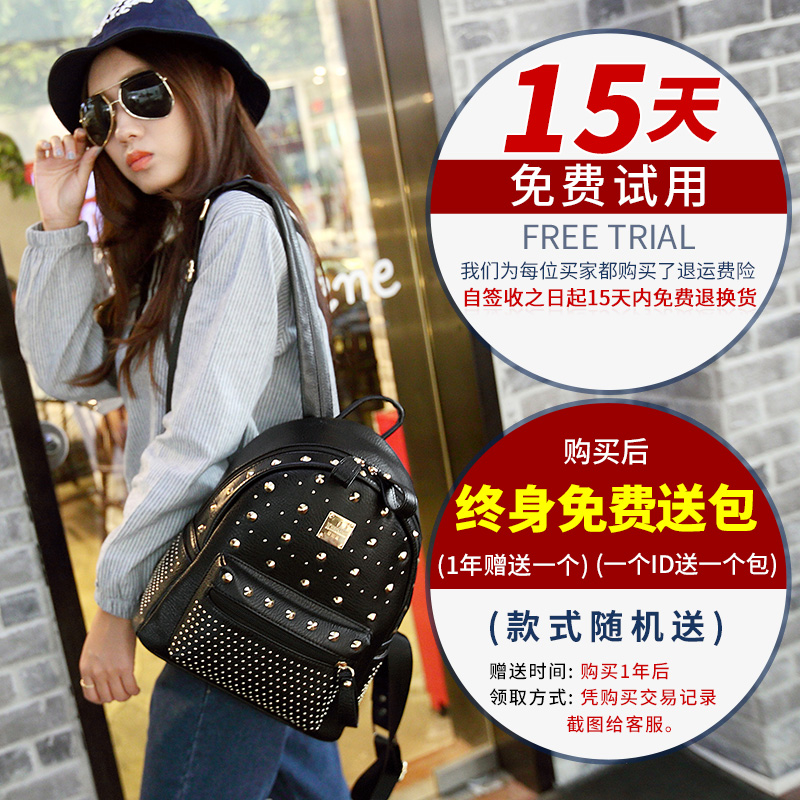 / 女士雙肩包女包包韓版pu學院風新款潮鉚釘時尚百搭個性小背包