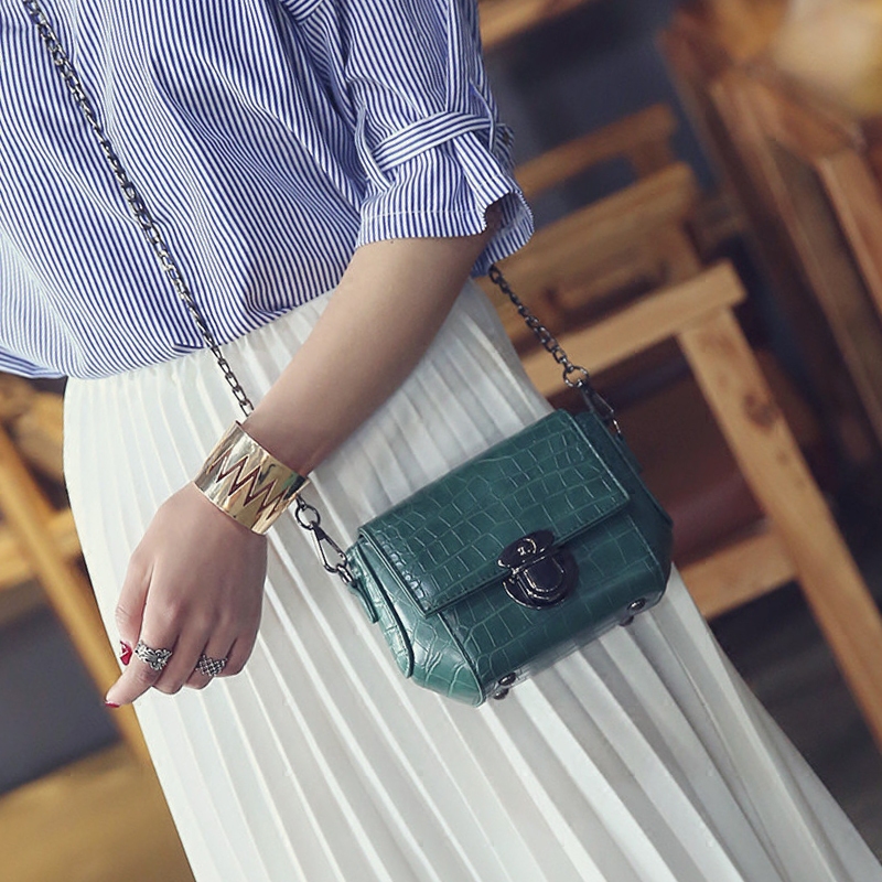 / 包包女新款鱷魚紋單肩女包小包韓版鏈條迷你小方包百搭斜挎包