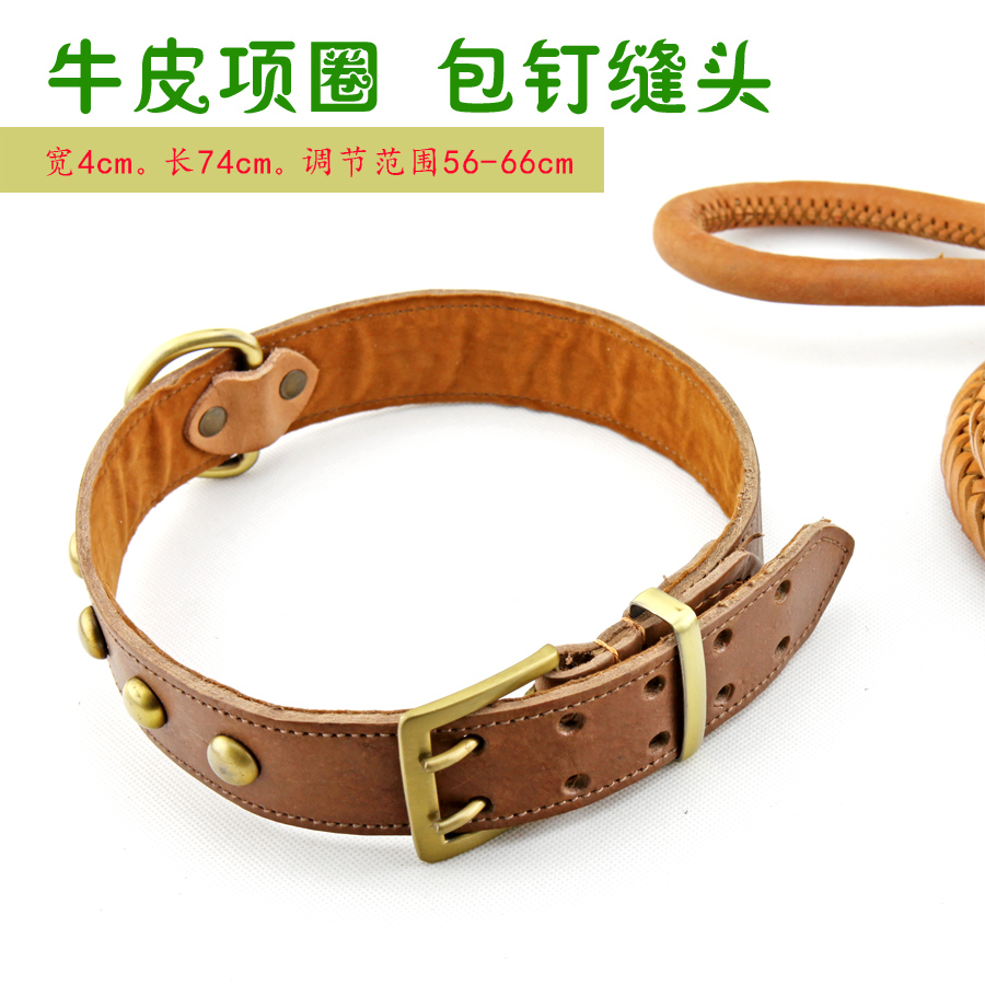 / 加粗12股編花牛皮牽繩大中型犬牽繩項圈套裝德牧金毛藏獒狗鏈包郵