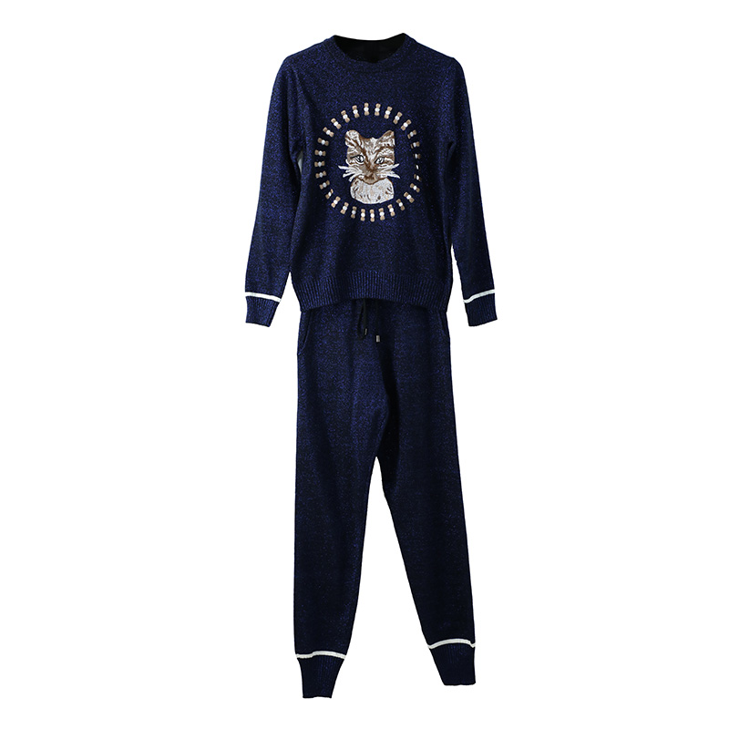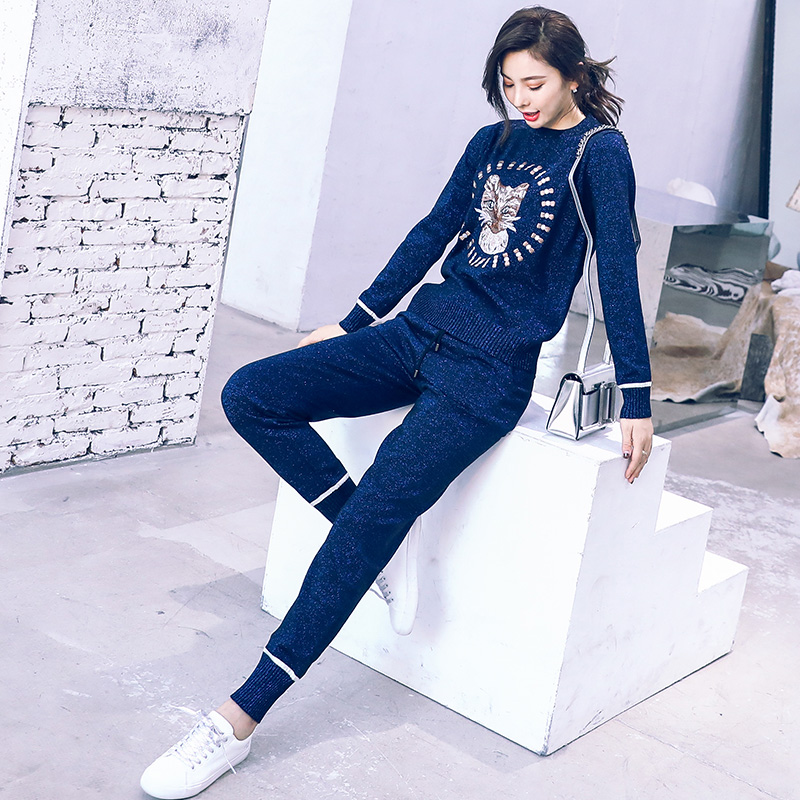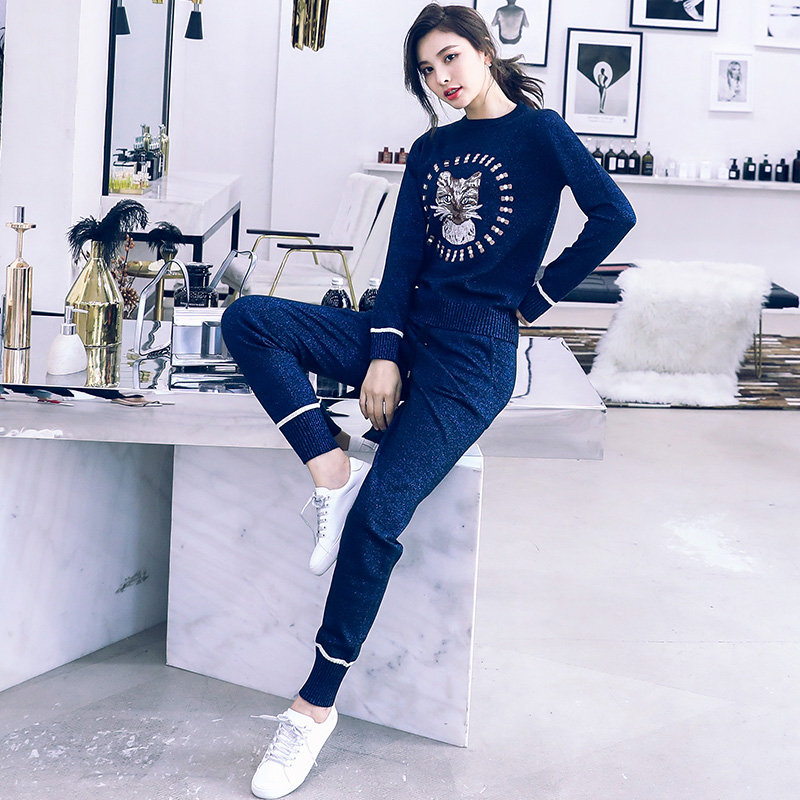 名媛氣質休閑時尚套裝女2018秋裝新款長袖毛衣小腳褲長褲針織兩件