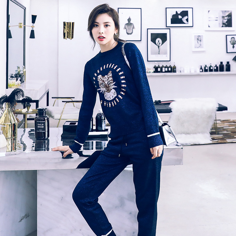 / 名媛氣質休閑時尚套裝女2018秋裝新款長袖毛衣小腳褲長褲針織兩件