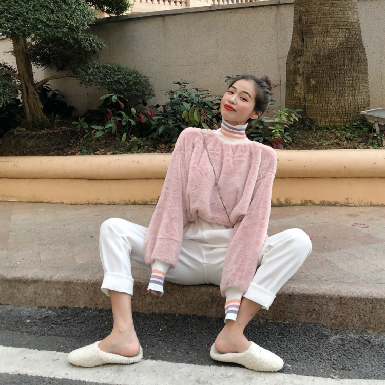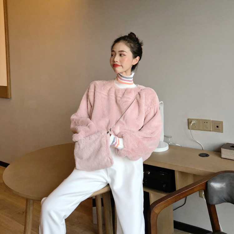 新款寬松毛絨加厚套頭衛衣上衣外套毛呢休閑褲呢子長褲女時尚套裝