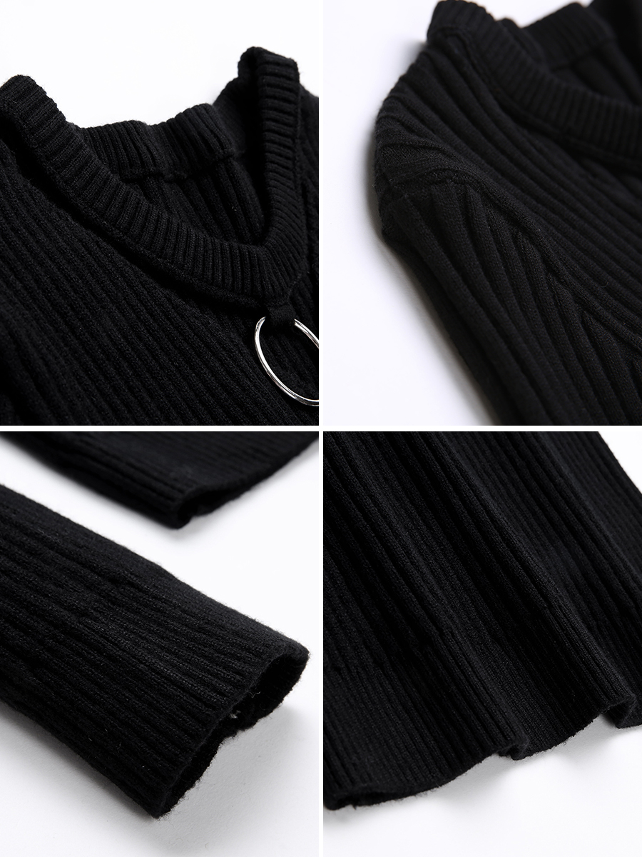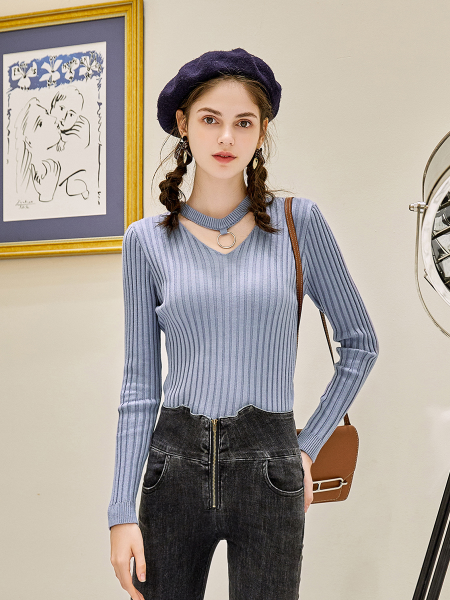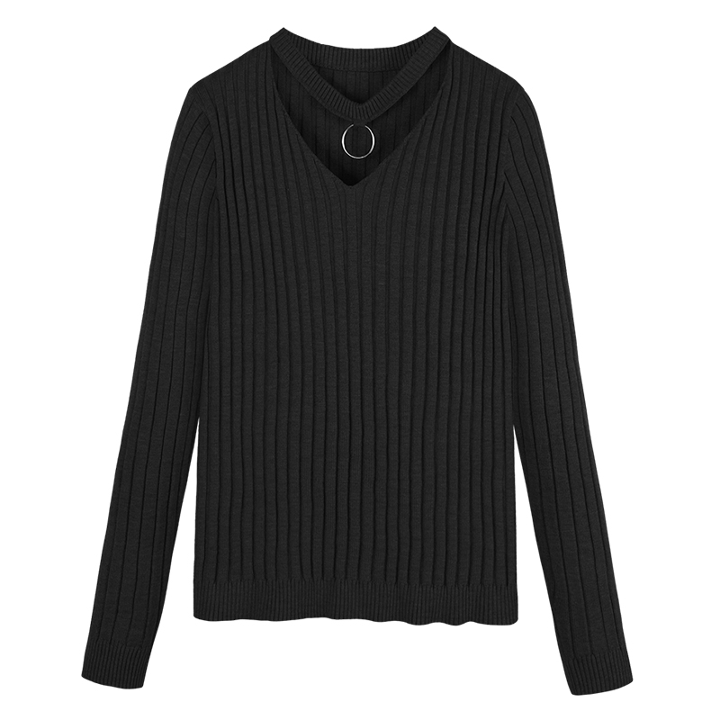 MG小象純色毛衣女秋2018新款V領性感套頭針織衫彈力內搭打底衫潮