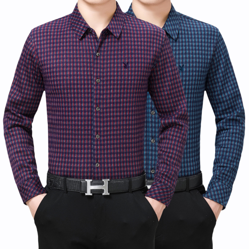 / 花花公子正品中年男士長袖羊絨保暖襯衫商務男裝格子加絨加厚襯衣