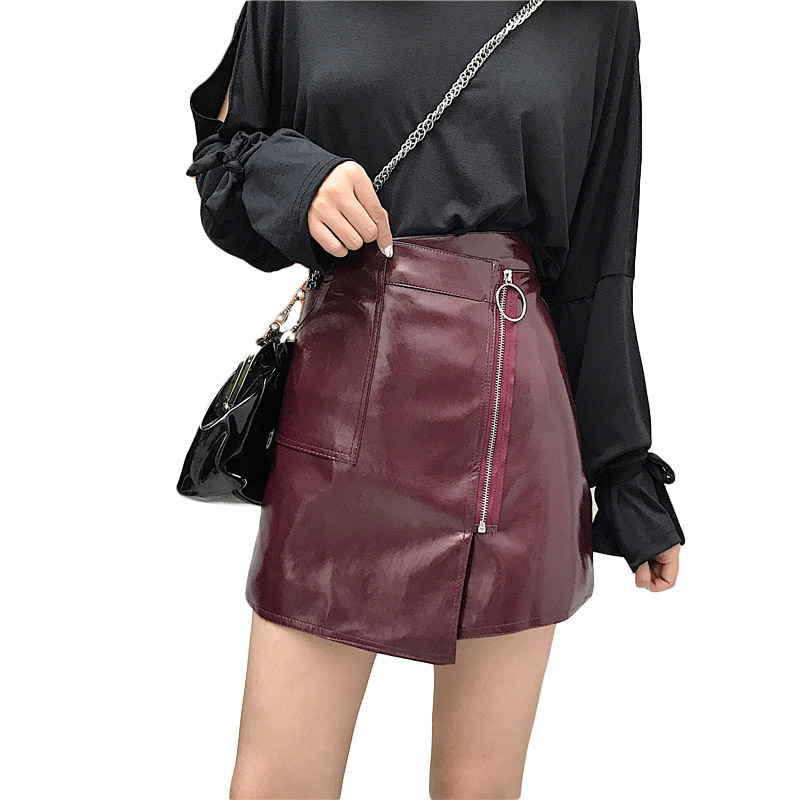 / 港味氣質百搭高腰半身裙女春秋新款不規則a字短皮裙拉鏈亮面裙子