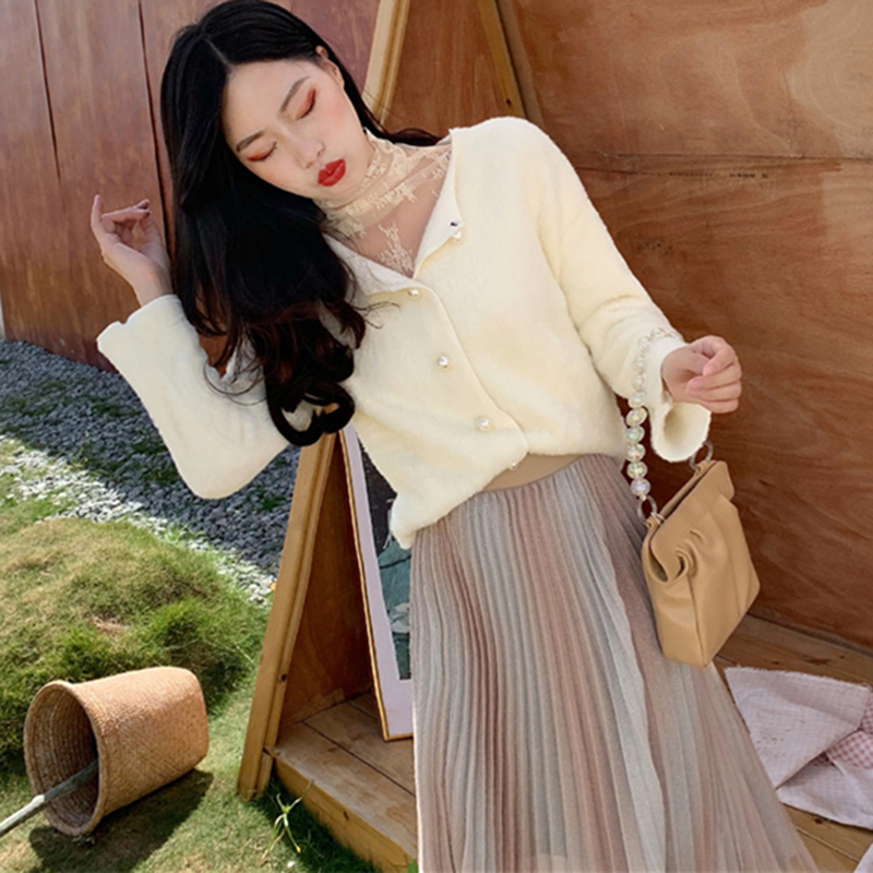 杏色外套|白色外套|網紗打底衫|圖片色 半身裙
