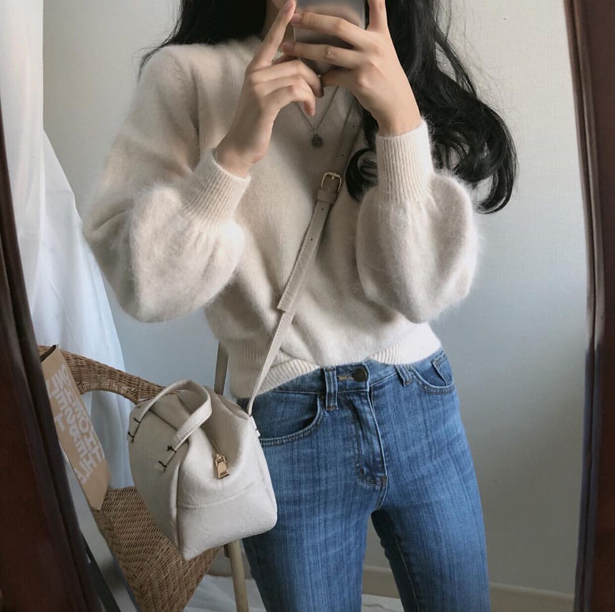 / 小清新氣質時尚女裝上衣新款韓版溫柔毛茸茸保暖純色百搭針織毛衣