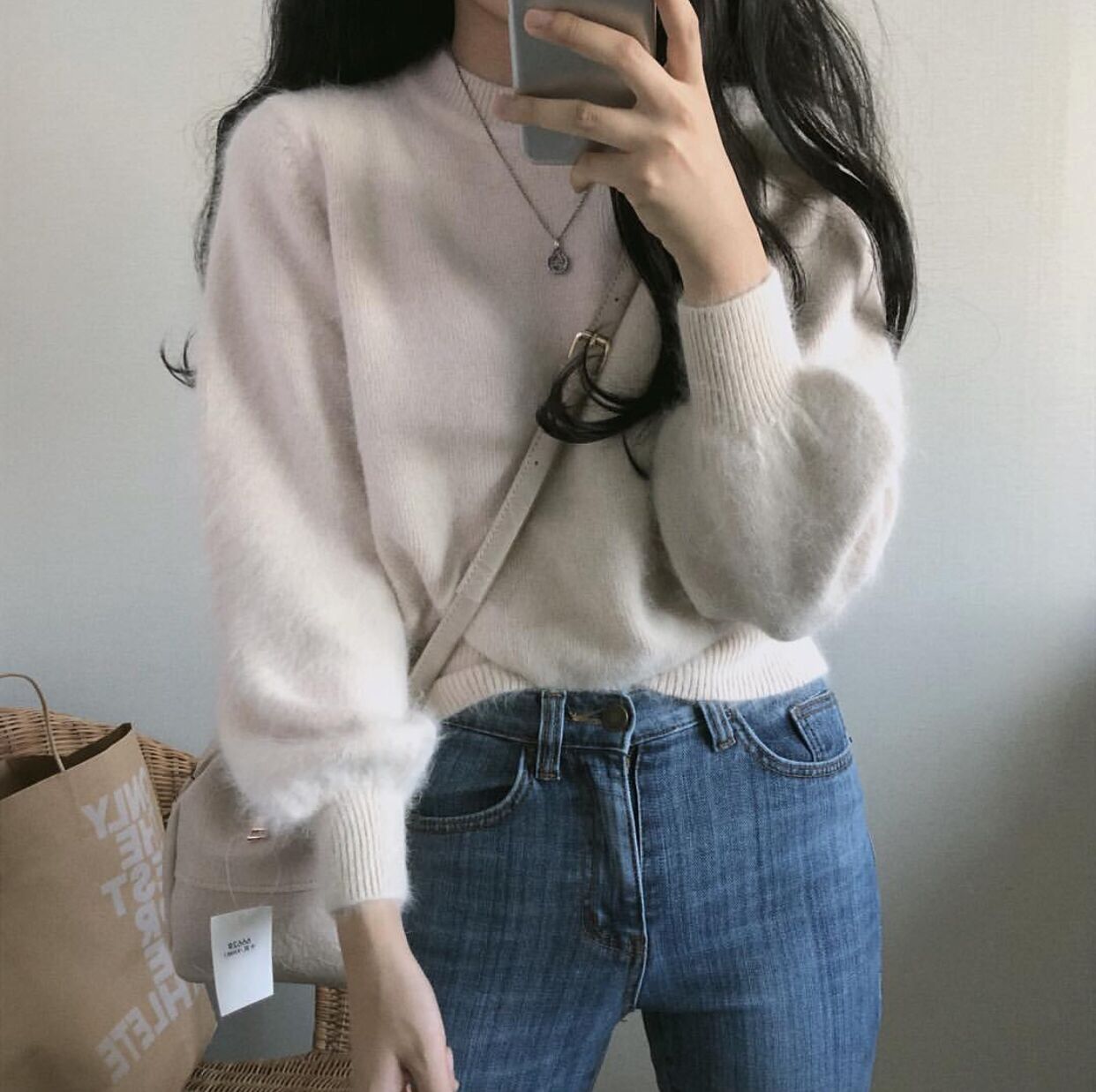 小清新氣質時尚女裝上衣新款韓版溫柔毛茸茸保暖純色百搭針織毛衣