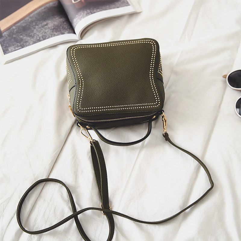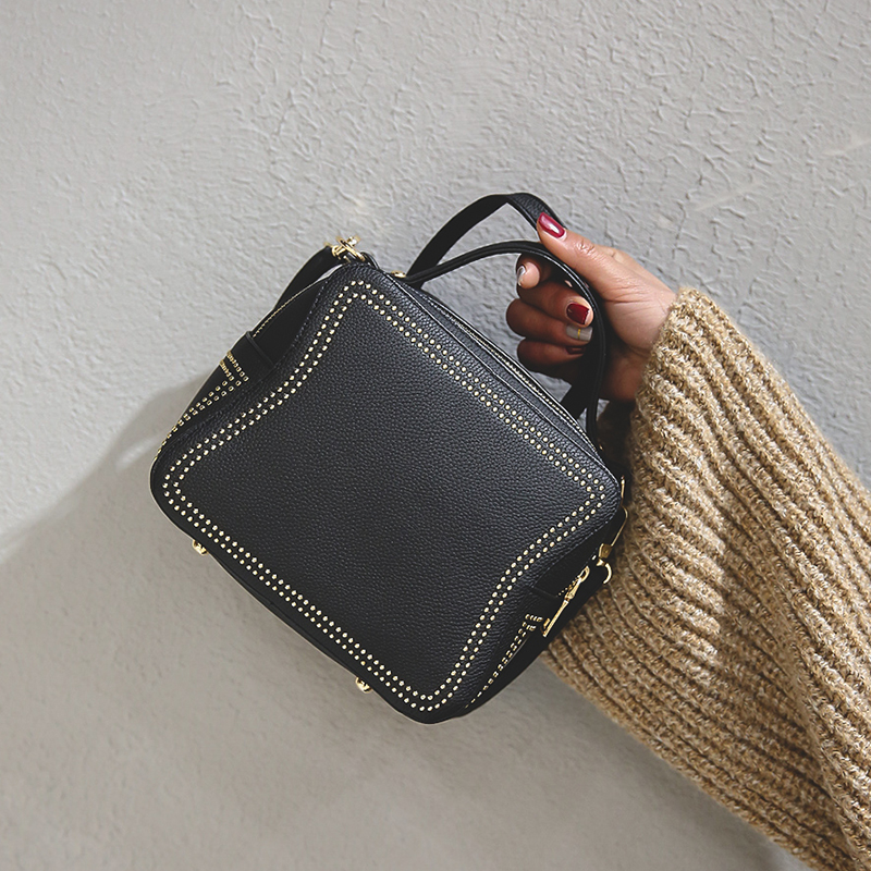 新款韓版迷你小方包復古簡約鉚釘包手提包女潮單肩斜挎包女包