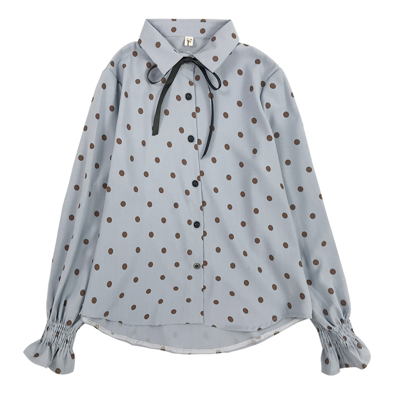 / 蝴蝶結復古波點襯衫女秋裝新款寬松荷葉長袖襯衣學生百搭休閑上衣