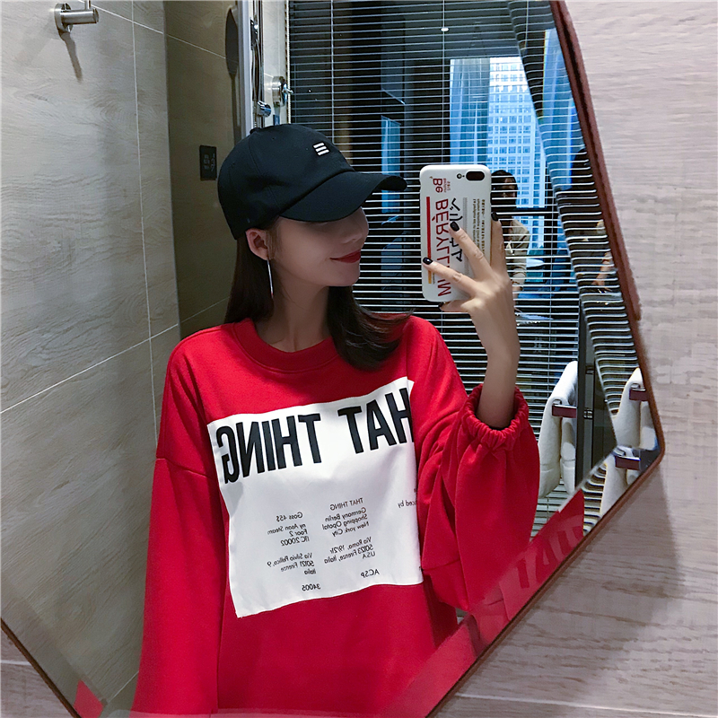 時尚百搭遮臀繡花字母套頭衛衣2018新款女長袖韓版寬松顯瘦上衣潮