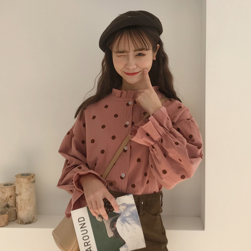 / 襯衣上衣秋裝女2018新款韓版寬松波點燈籠長袖百搭學生休閑襯衫潮