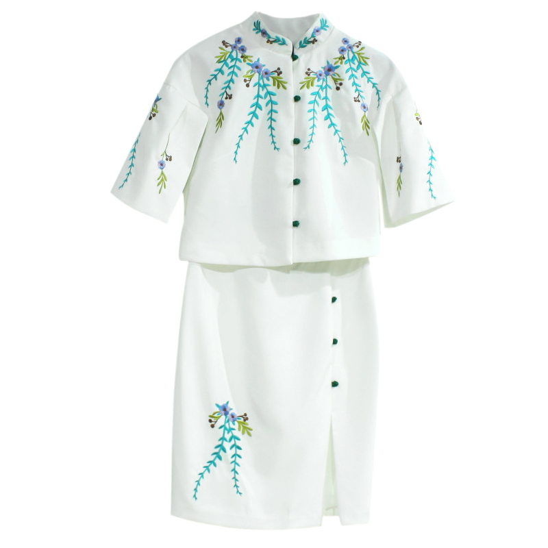 / 名媛氣質套裝2018春季新款斗篷外套上衣半身裙開叉裙女套裝