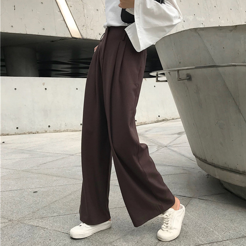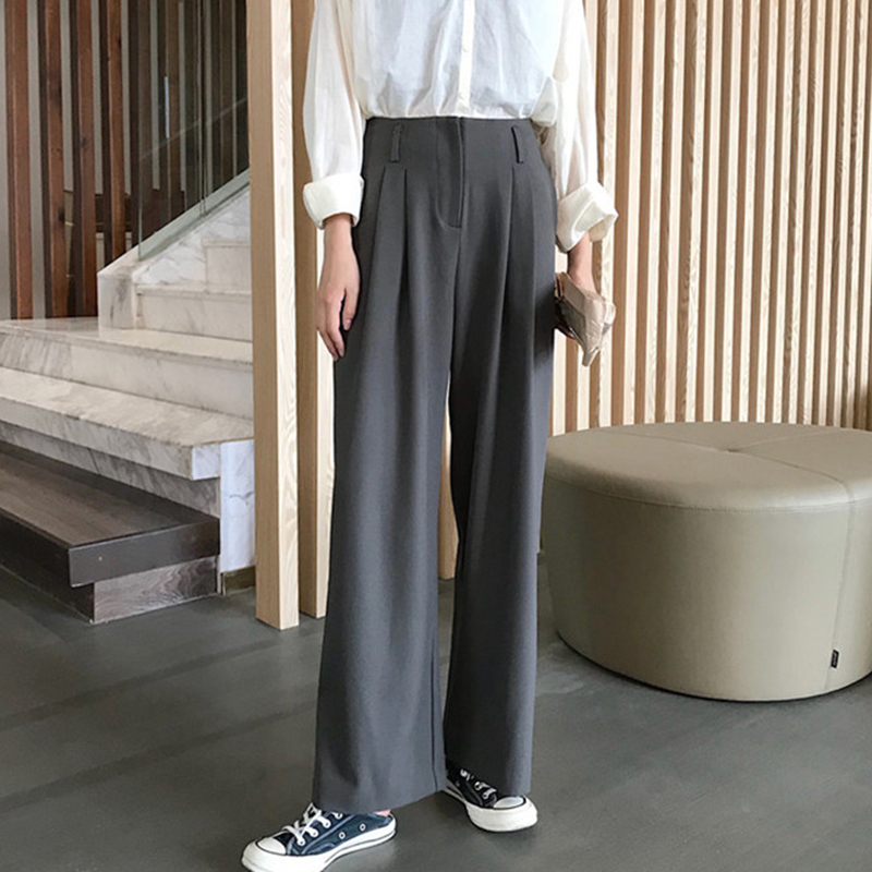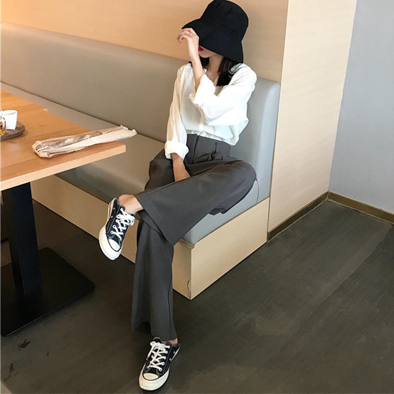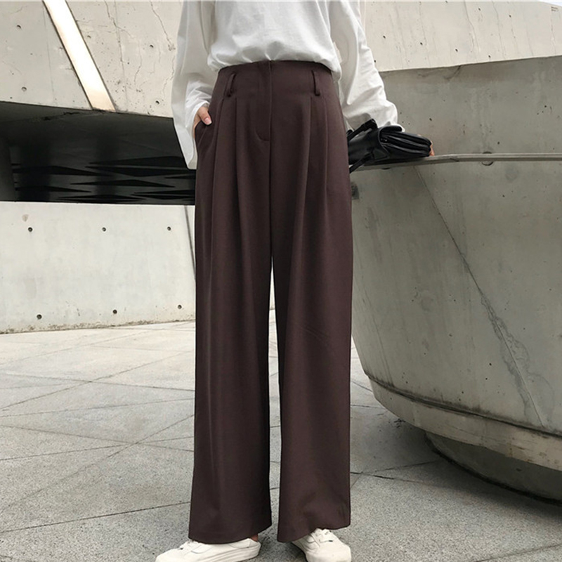 / 復古垂感闊腿褲女2018秋裝新款高腰直筒休閑褲顯瘦寬松拖地長褲子