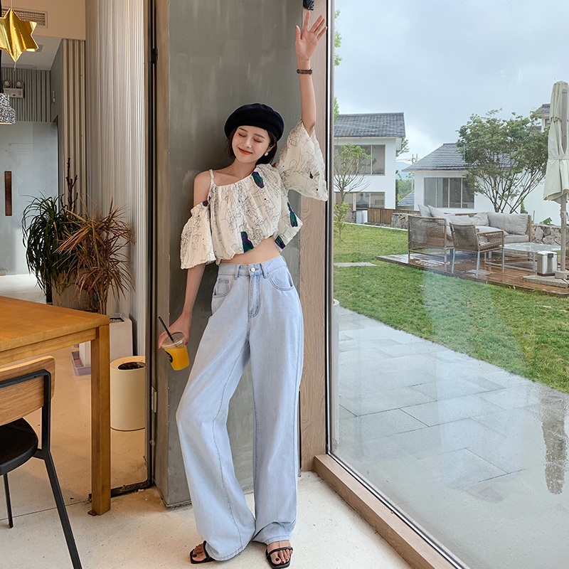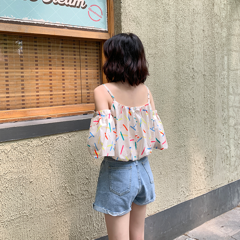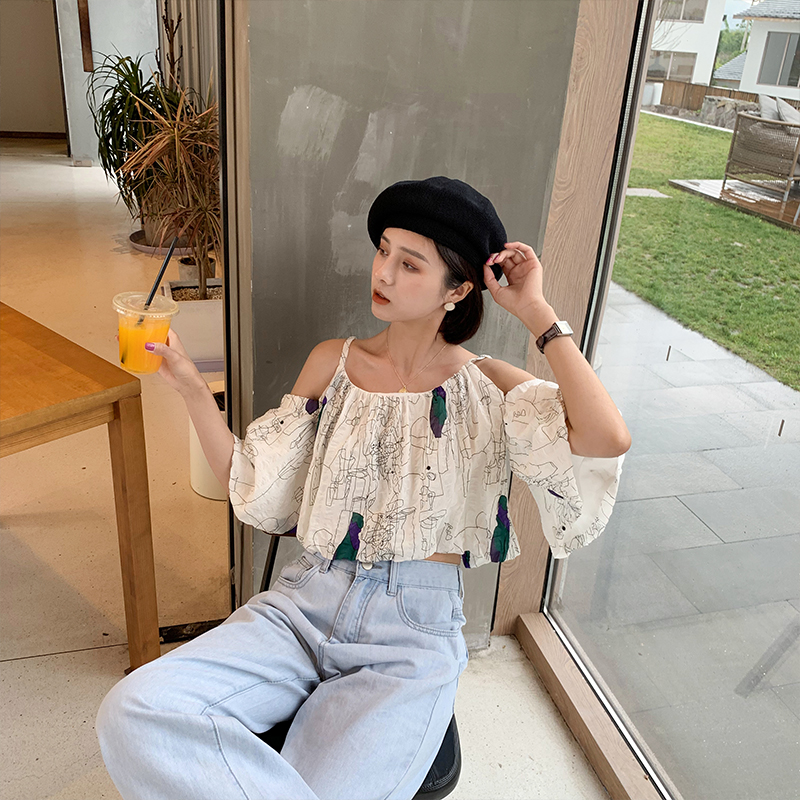 這種小露肩的吊帶寬袖上衣夏天yi定要有姓名!