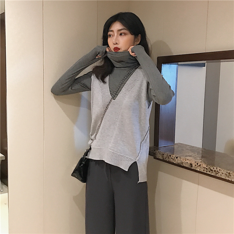 / 秋冬季寬松毛衣女2018新款針織馬甲背心女套頭高領打底衫闊腿褲潮