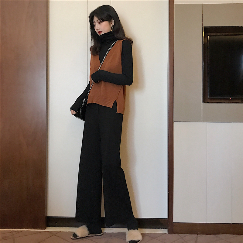 秋冬季寬松毛衣女2018新款針織馬甲背心女套頭高領打底衫闊腿褲潮