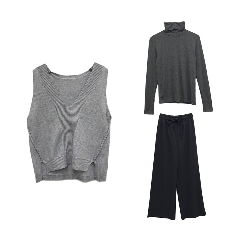 咖啡棕馬甲|灰色馬甲|杏色馬甲|黑色打底衫|灰色打底衫|杏色打底衫|灰色褲子|黑色褲子