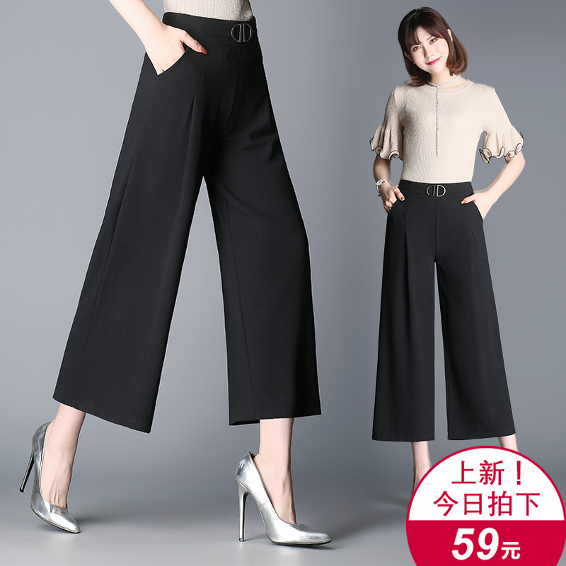 / 雪紡闊腿褲女夏九分直筒褲新款高腰寬松顯瘦休閑褲子百搭西褲