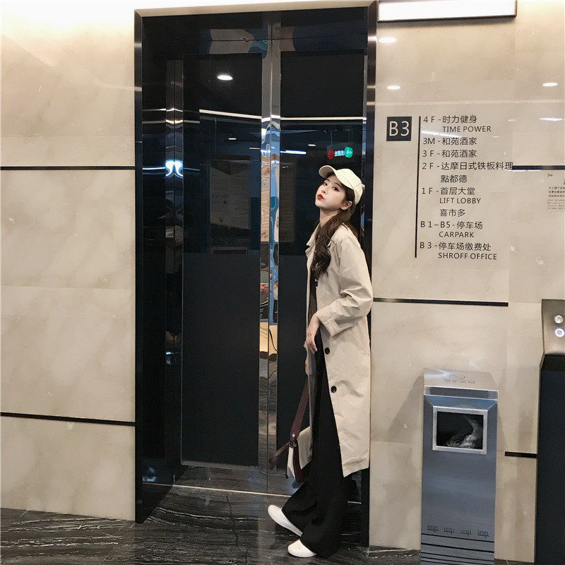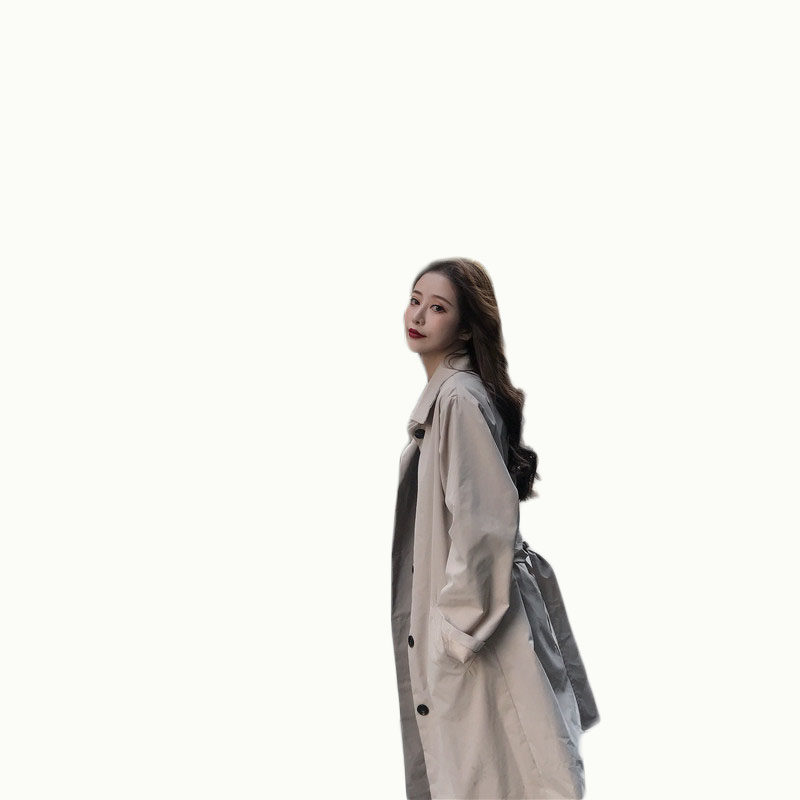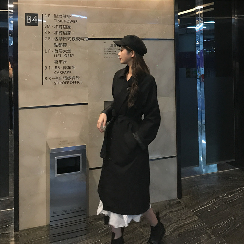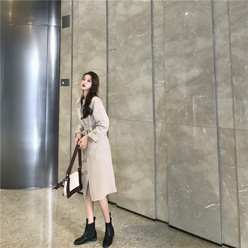 風衣女中長款韓版秋季2018新款純色系腰寬松復古外套(有里布)潮
