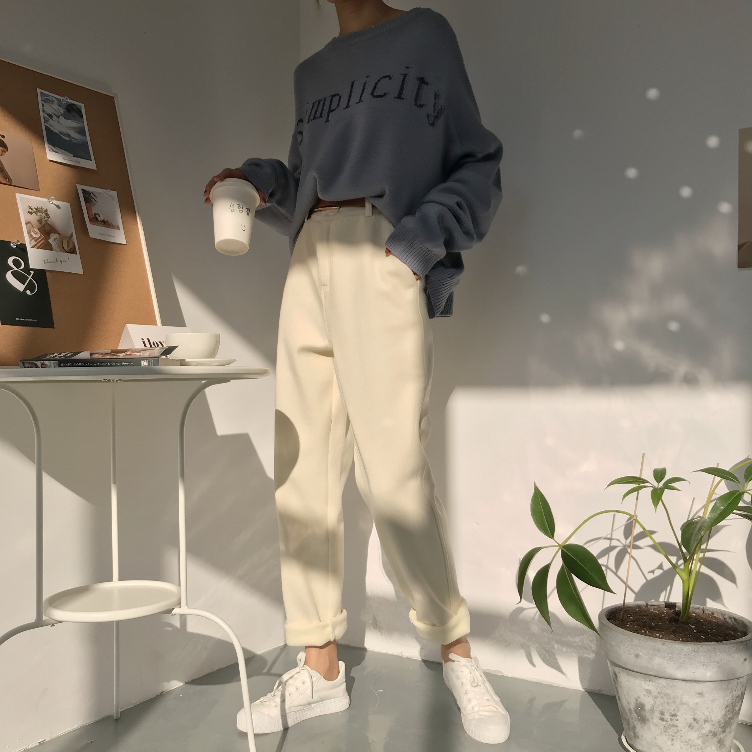韓版秋冬新款褲子女學生寬松韓版ulzzang百搭高腰加絨保暖休閑褲