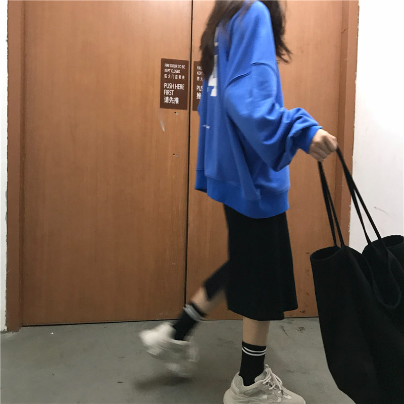 / 韓版時尚休閑套裝秋季中長款長袖衛衣+開叉包臀裙半身裙兩件套女
