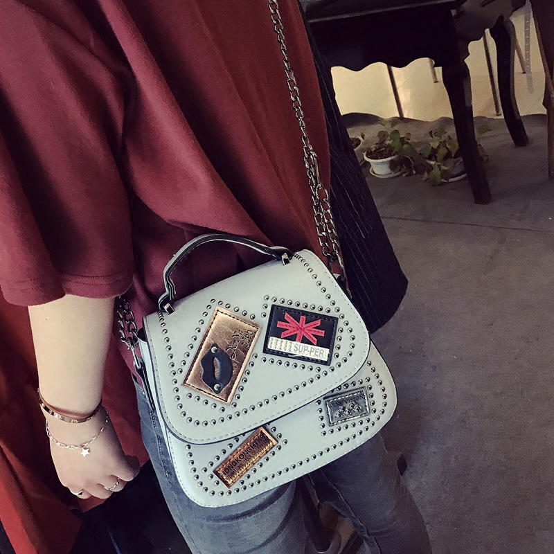 / 包包女新款潮韓版鏈條小包個性徽章手提包復古單肩女包斜挎包