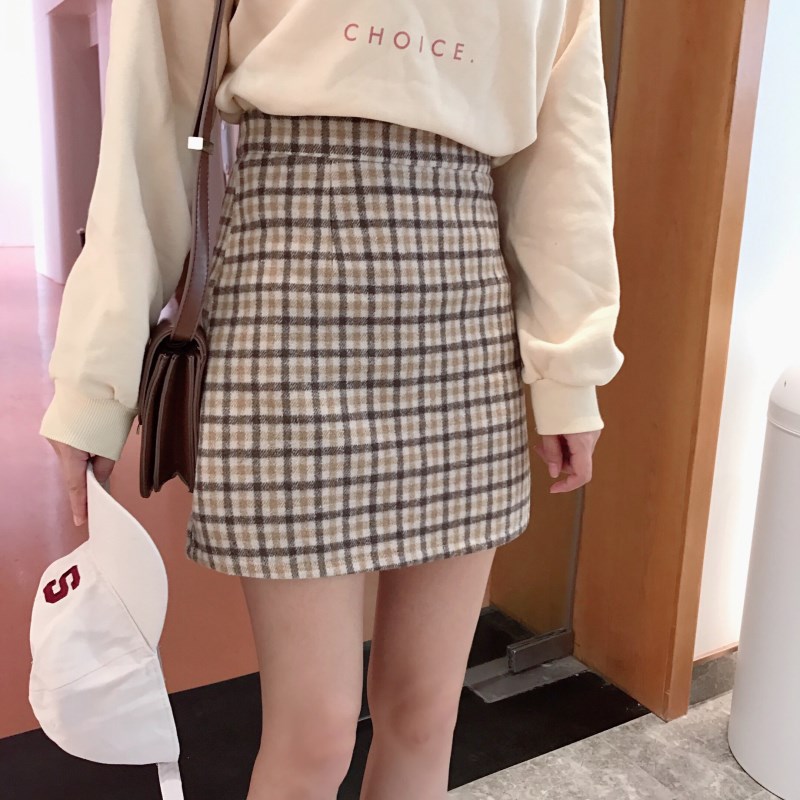 2018新款秋冬女裝韓版寬松毛呢高腰格子半身裙A字裙短裙學生裙子