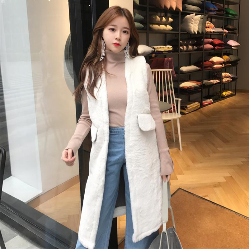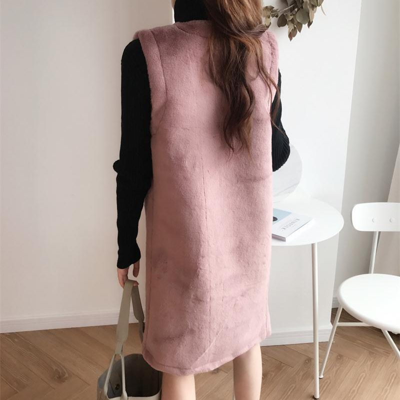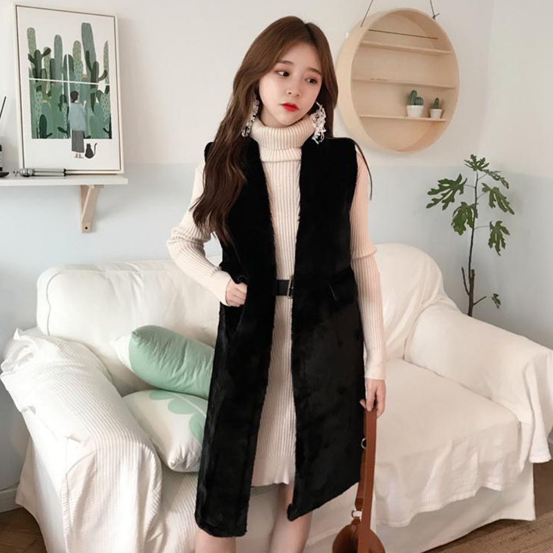 氣質口袋無袖毛絨馬甲女裝秋冬2018新款復古休閑寬松黑色中長外套