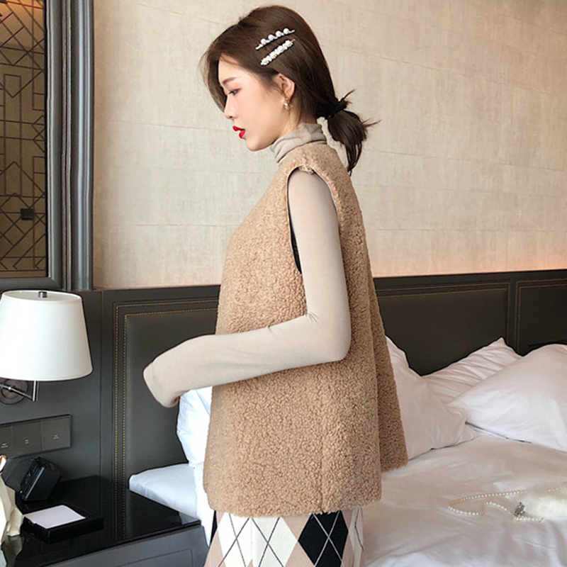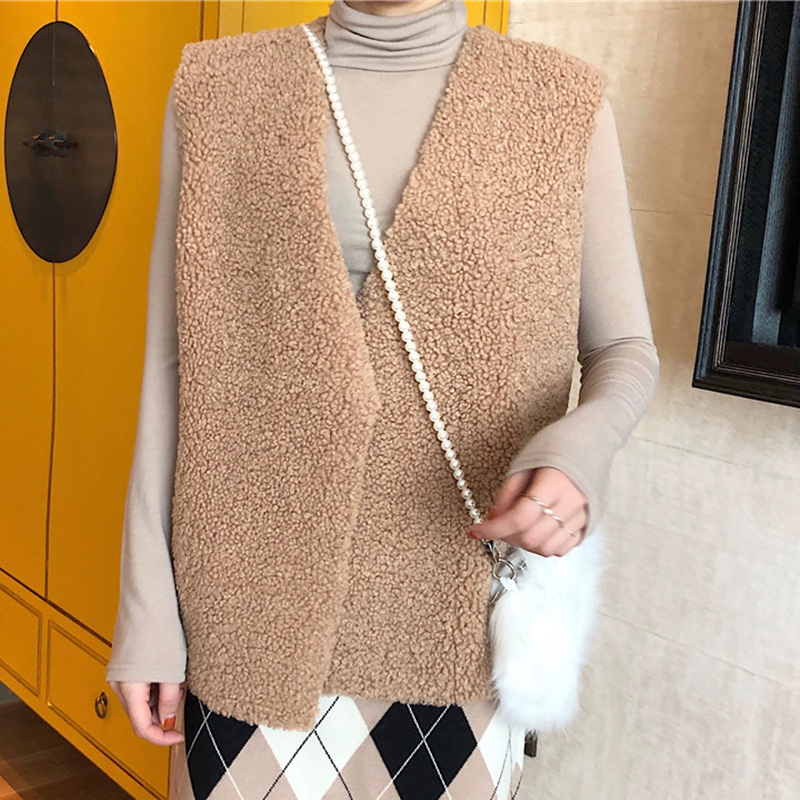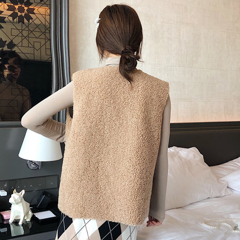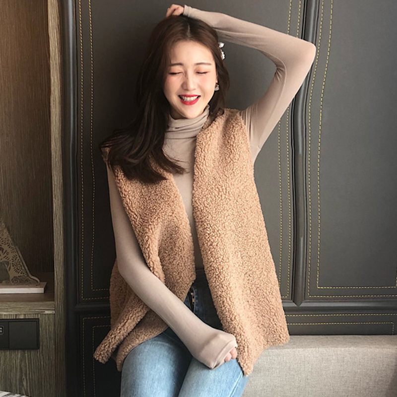 秋裝女2018新款韓版純色羊羔毛無袖馬甲學生休閑外套時尚簡約上衣