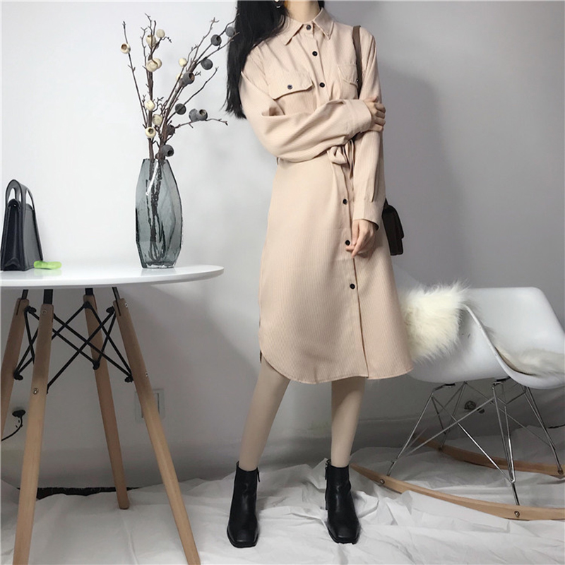 秋裝女2018新款法式少女茶歇裙秋長袖襯衫扣子學生收腰連衣裙子