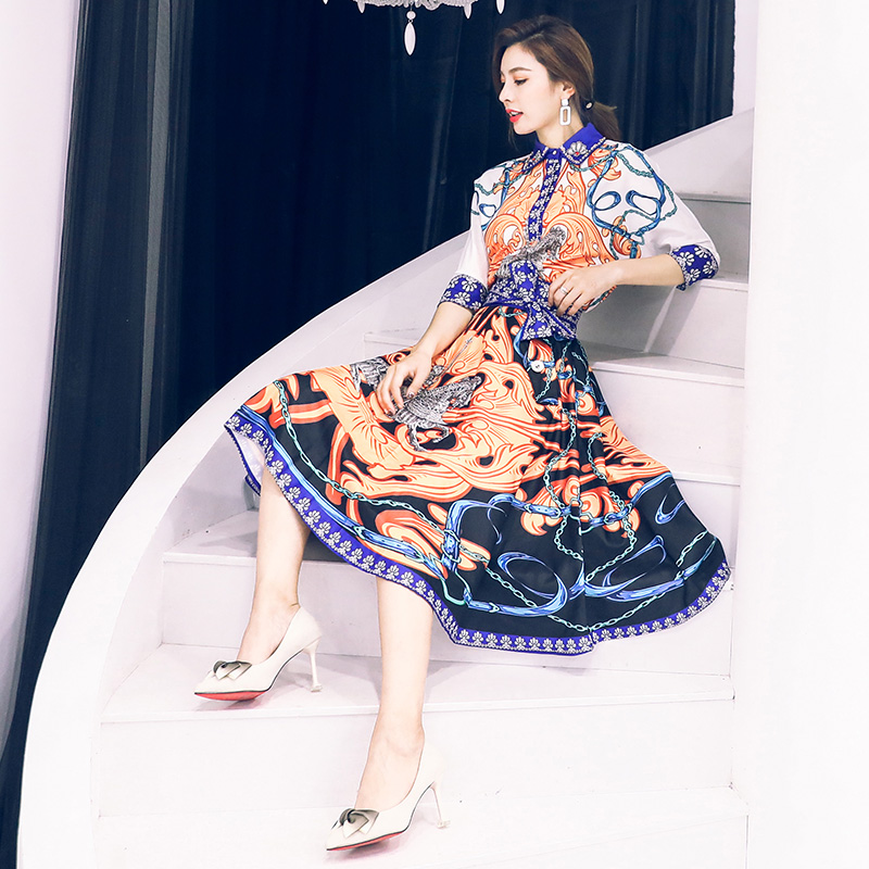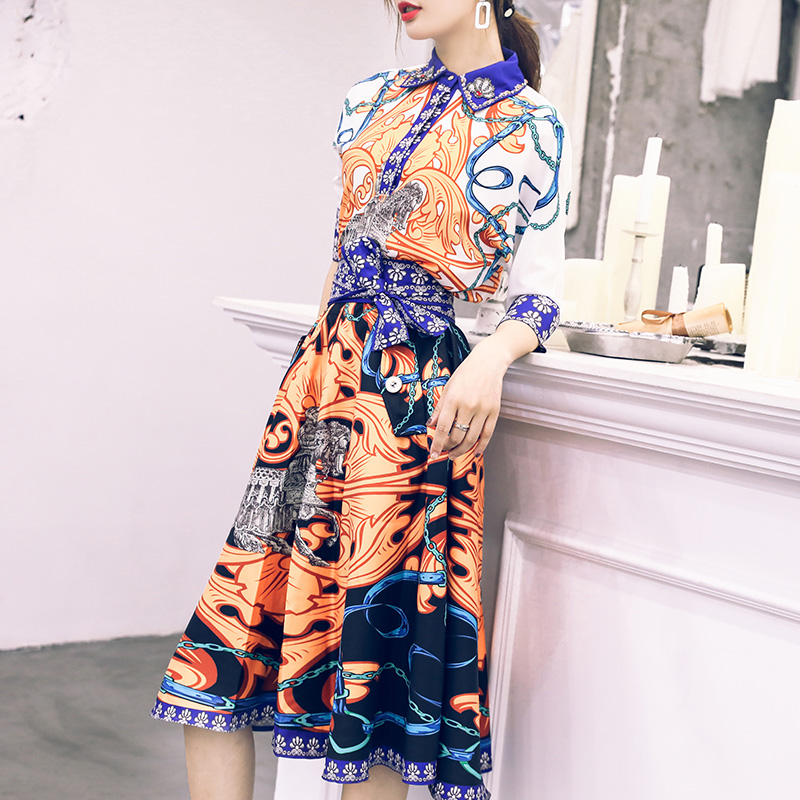 / 歐洲站秋裝女2018新款女裝印花襯衫半身裙套裝裙初秋兩件套連衣裙
