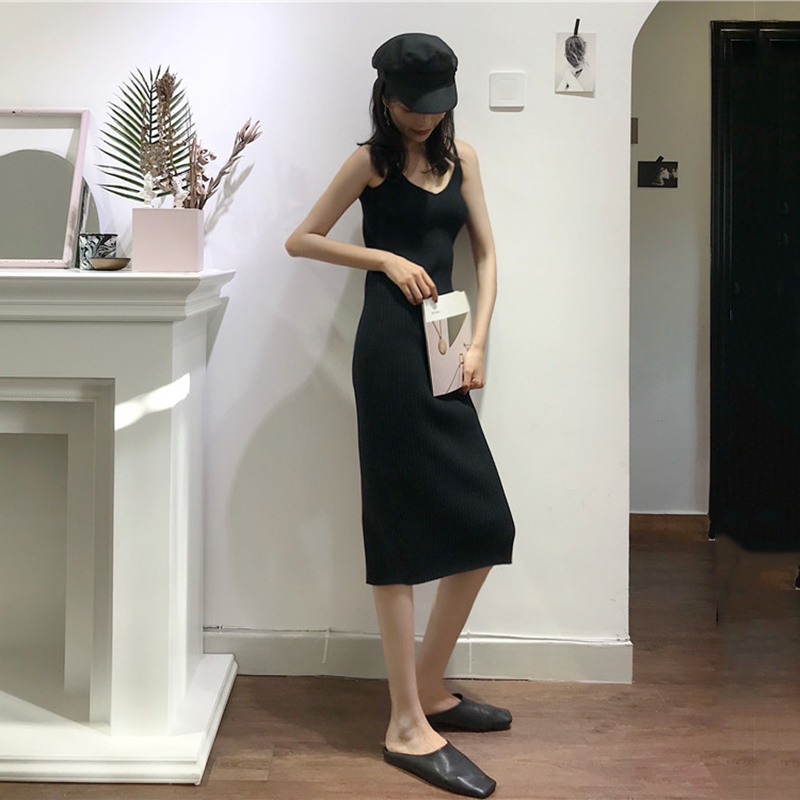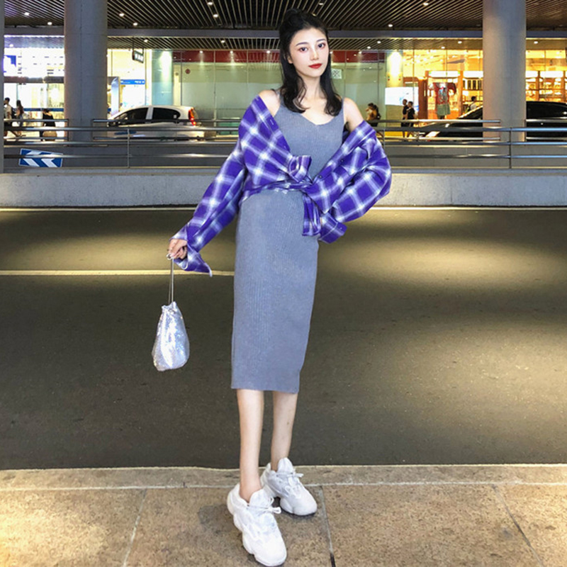 / 秋裝新款韓版港味小心機氣質修身顯瘦溫柔風針織吊帶打底連衣裙女