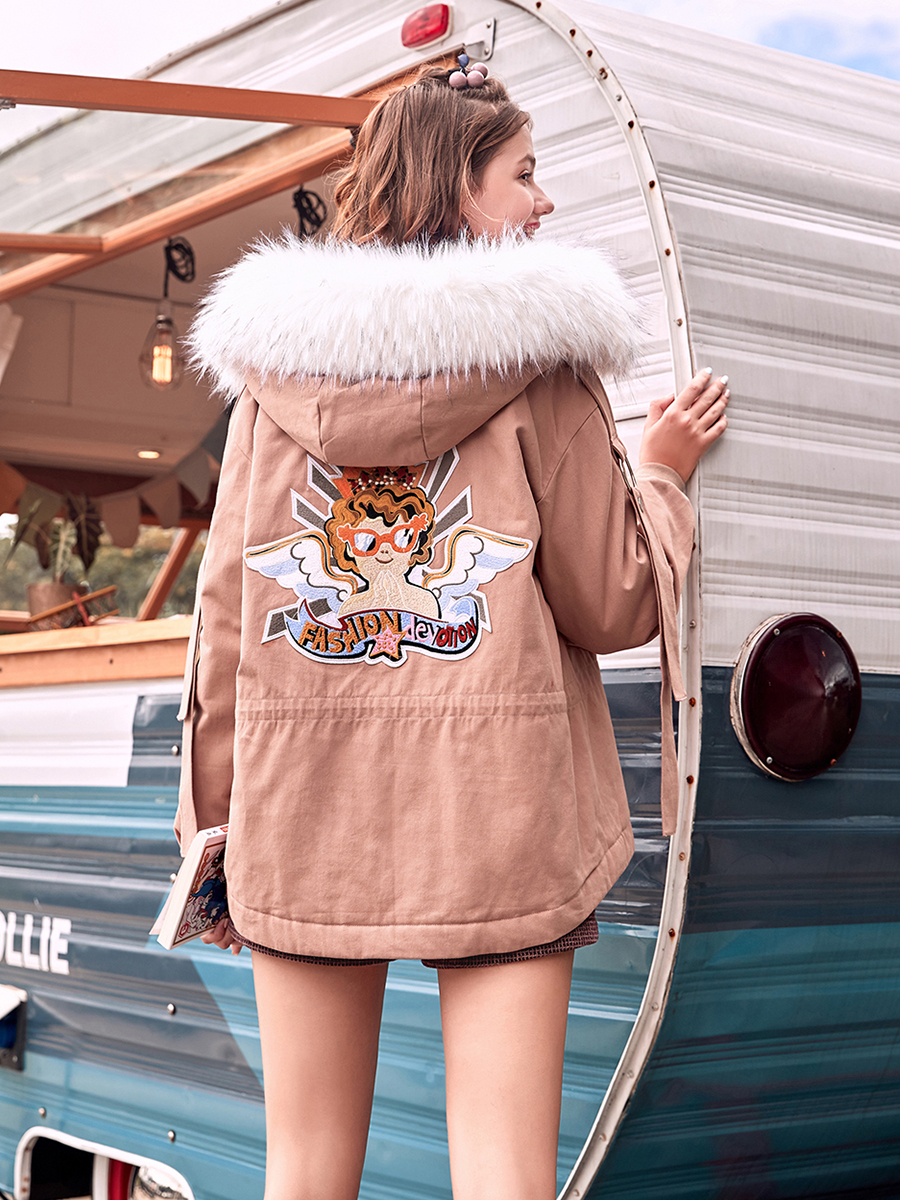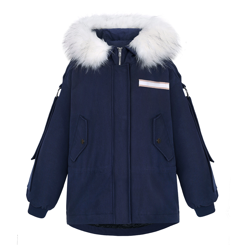 MG小象寬松連帽棉衣女冬加厚休閑大毛領棉服2018新款學院風外套潮