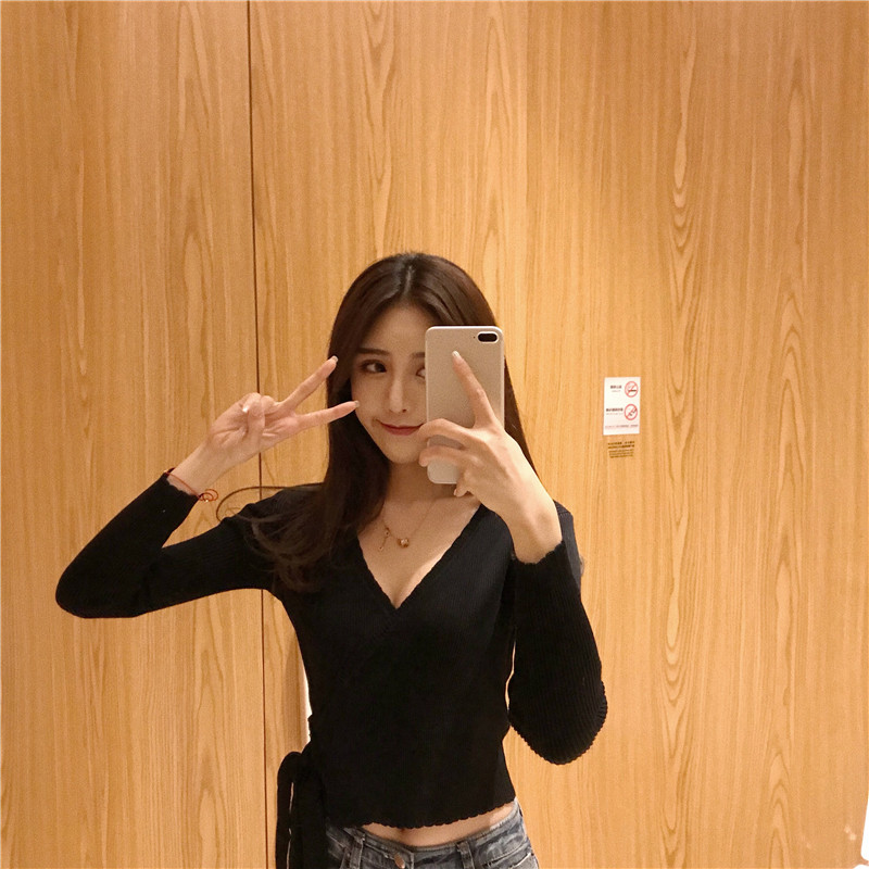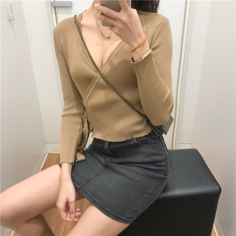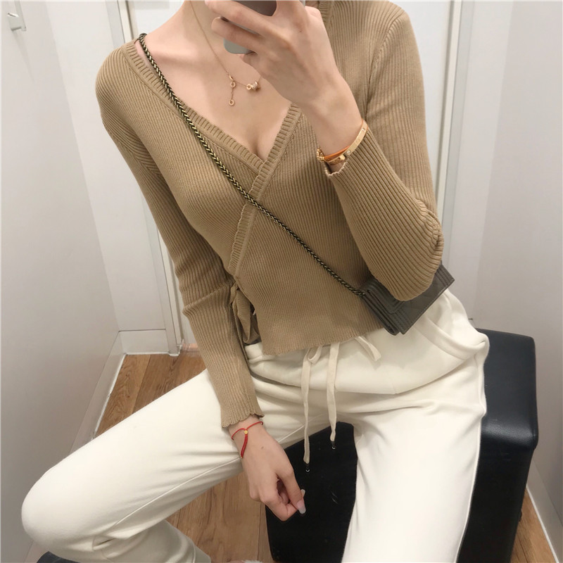 2018秋裝新款女交叉領性感V領毛衣韓版修身顯瘦氣質百搭上衣女潮
