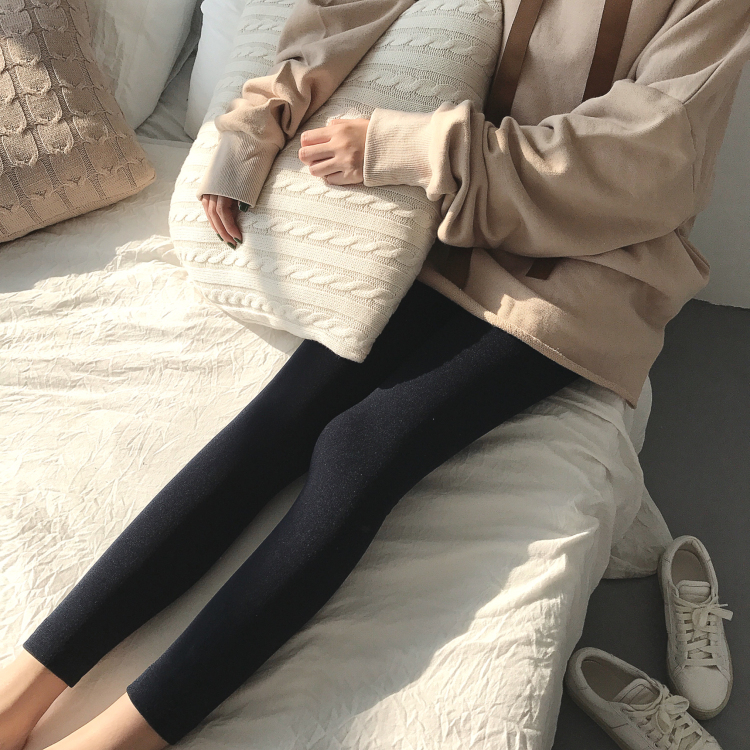 復古韓風chic加絨加厚保暖打底褲女2018新款黑色修身顯瘦百搭褲子