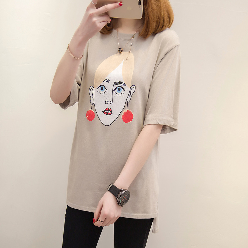 t恤女夏裝寬松韓版打底衫小衫純色開叉個性春季短袖女新款潮