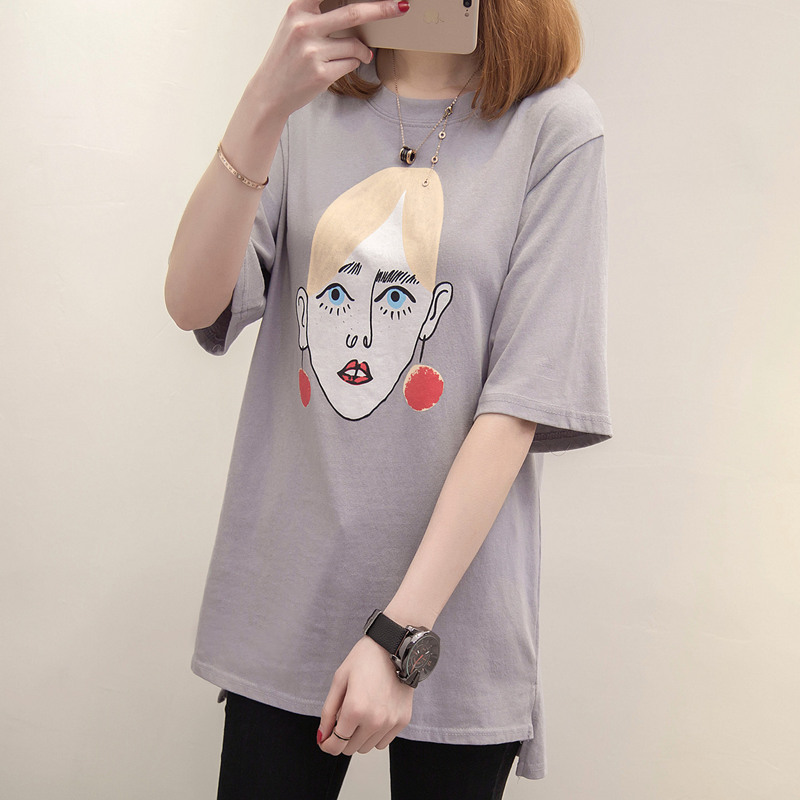 / t恤女夏裝寬松韓版打底衫小衫純色開叉個性春季短袖女新款潮