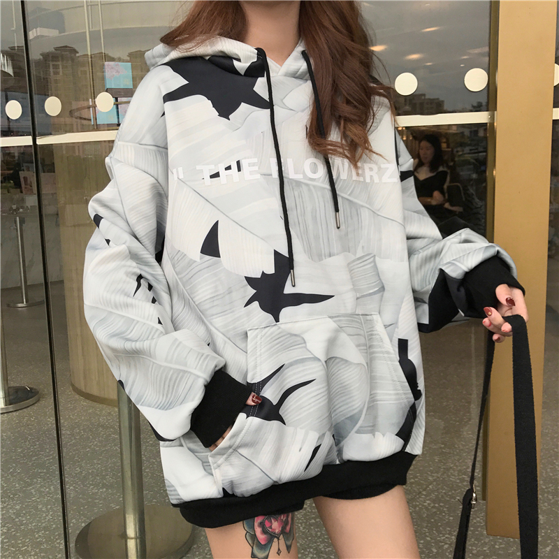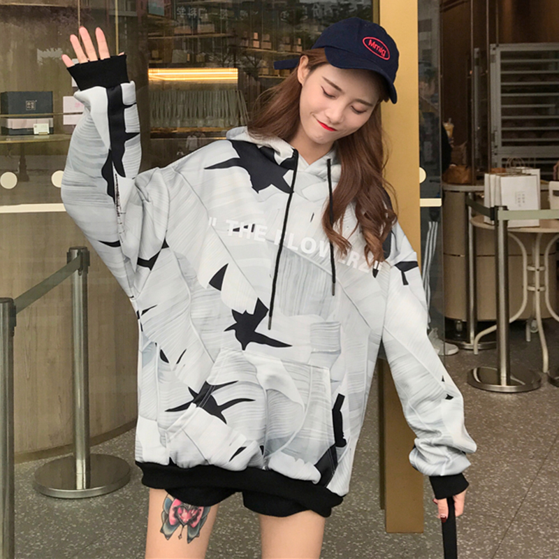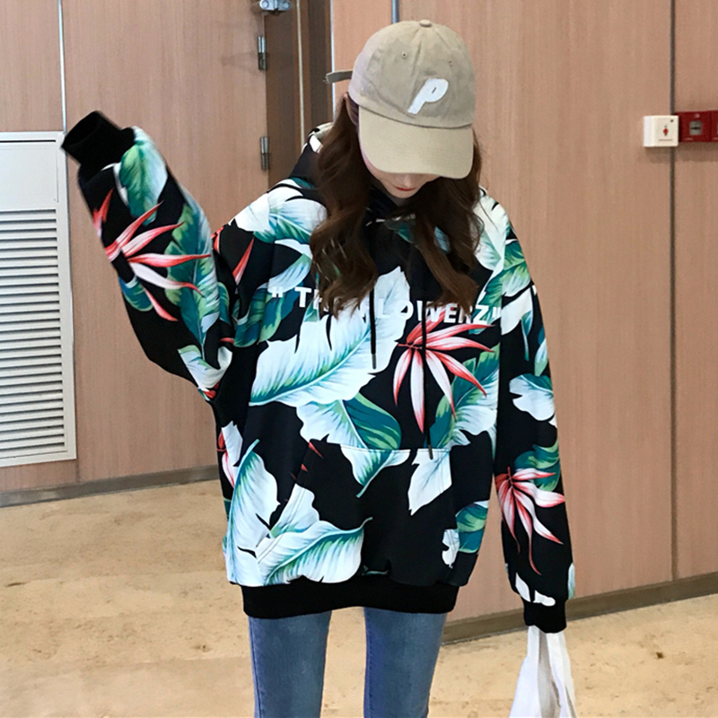 秋冬女裝2018新款韓版印花加絨套頭衛衣原宿風寬松長袖連帽外套潮