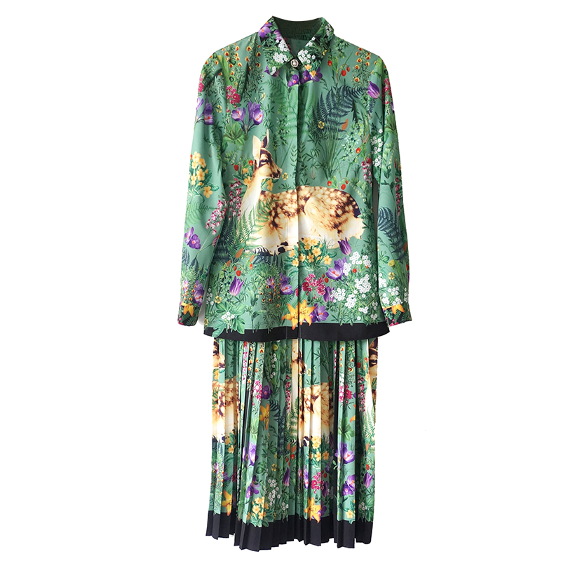 / 歐洲站優雅氣質時髦高腰顯瘦長袖上衣百褶半身裙兩件套時尚套裝潮