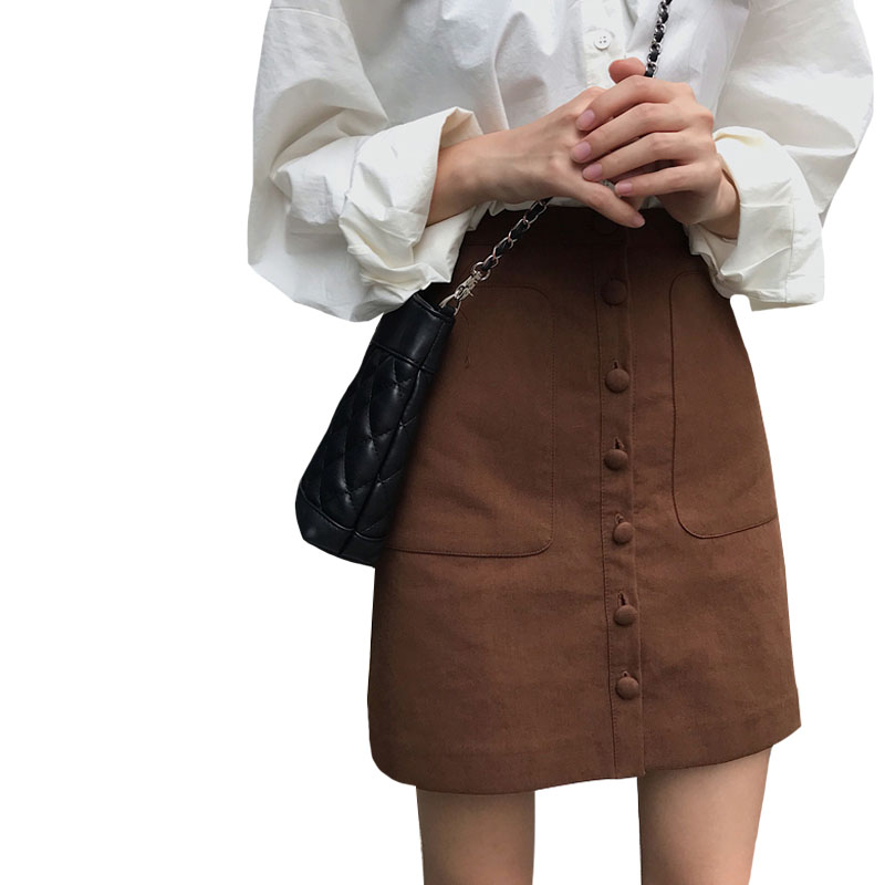 / 秋季女裝韓版高腰一排扣包臀裙半身裙寬松A字裙短裙學生顯瘦裙子