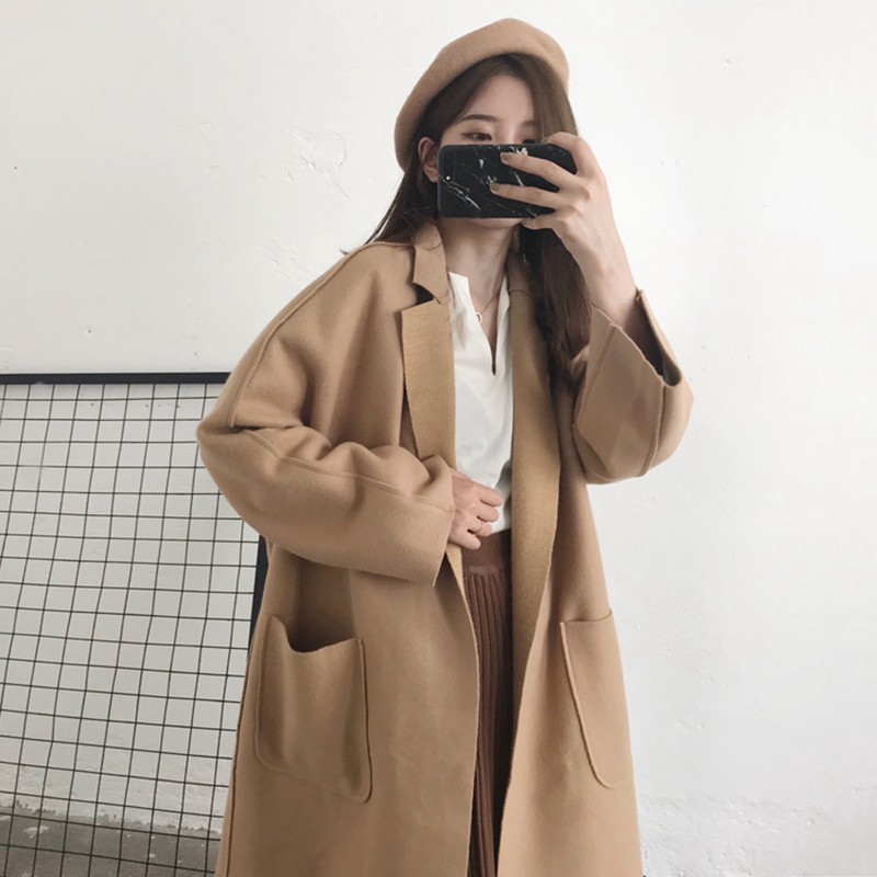 / 2018流行雙面呢子大衣女中長款韓版新款秋冬裝學生寬松毛呢外套女