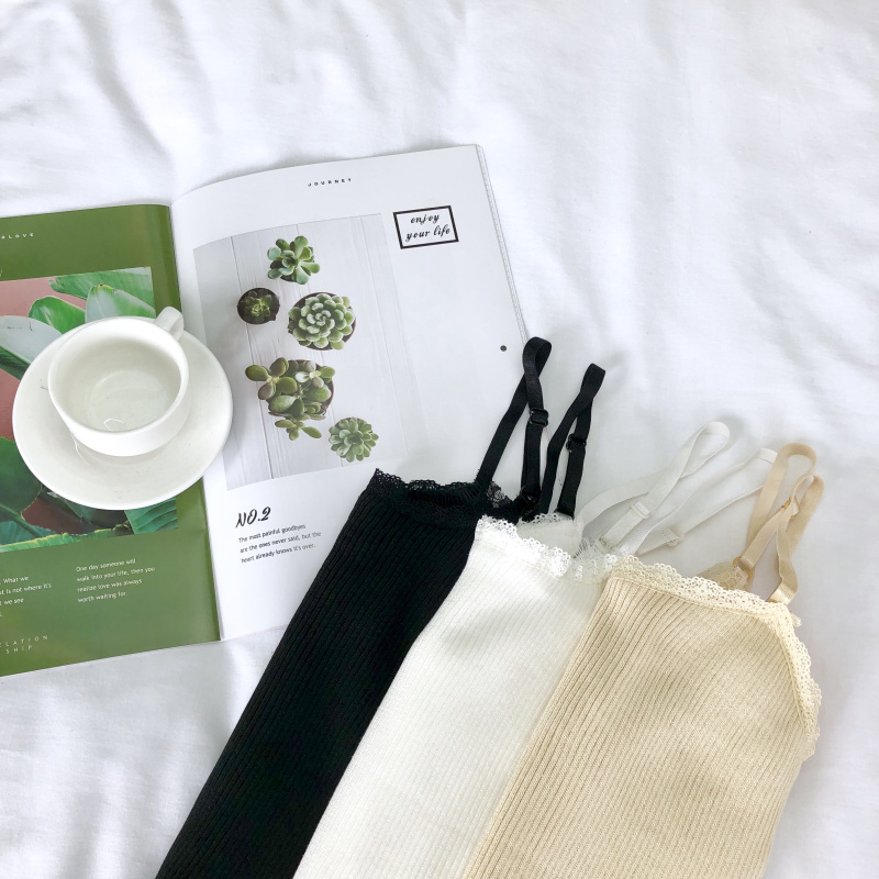/ 秋冬韓版針織加絨加厚彈力蕾絲邊V領吊帶打底衫背心內衣上衣女士