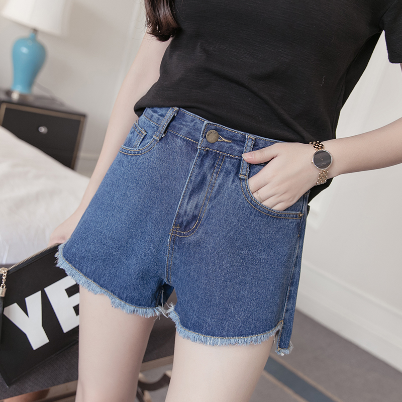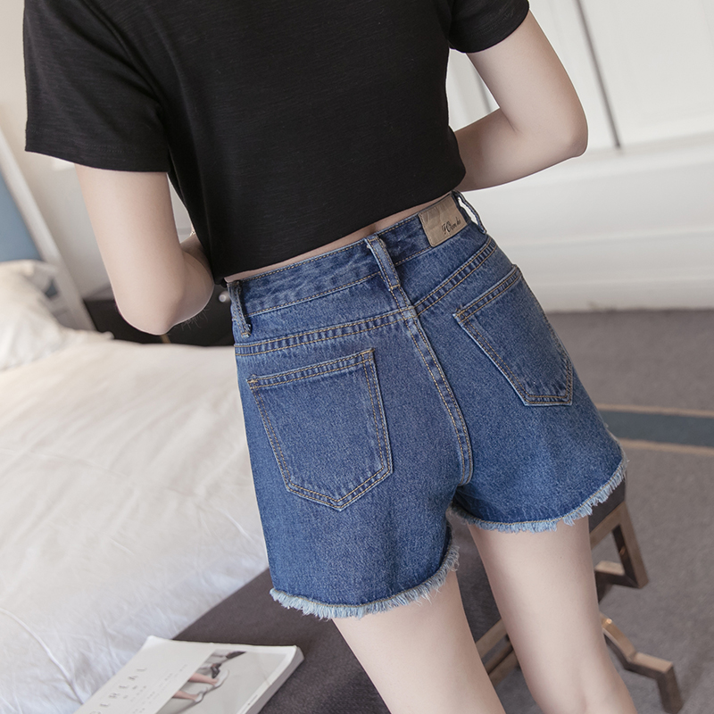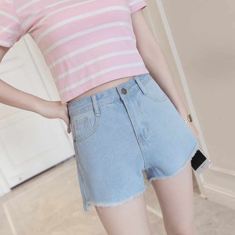 / 新款韓版寬松顯瘦牛仔短褲女春夏高腰淺色簡約毛邊牛仔褲熱褲