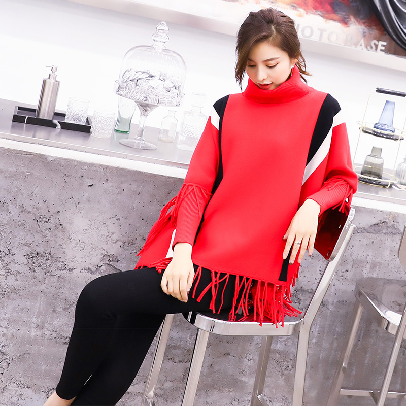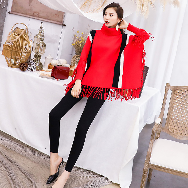 S秀淑女氣質2018秋季新款高領流蘇針織上衣緊身九分褲套裝潮