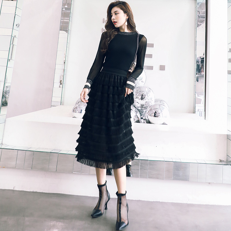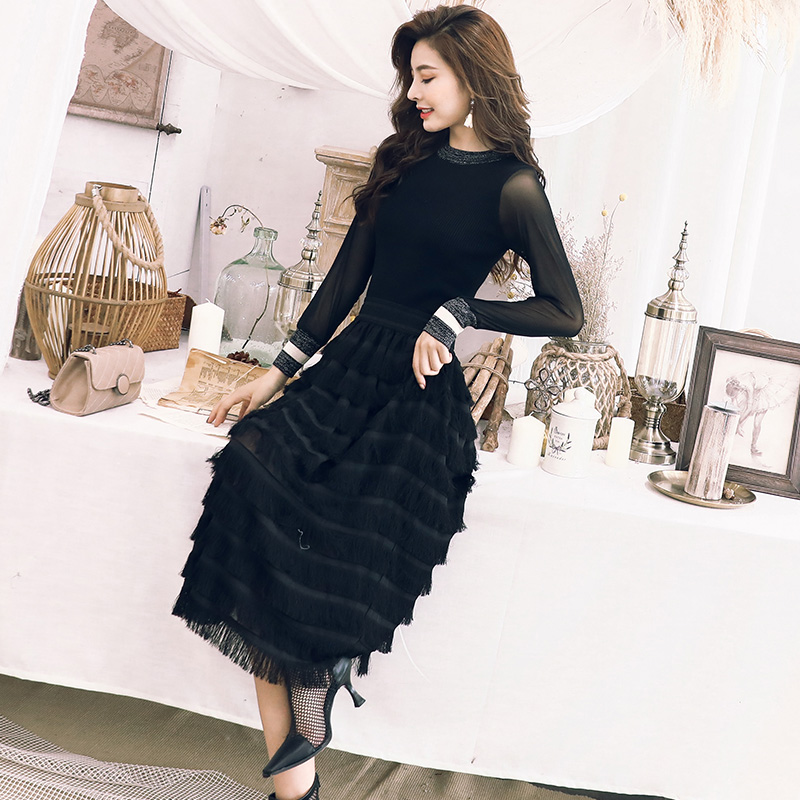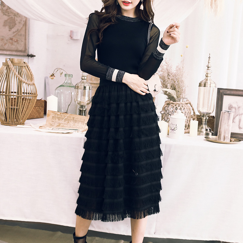 / 2018秋冬季新款女毛衣針織衫裙子蛋糕半身連衣裙網紅兩件時尚套裝
