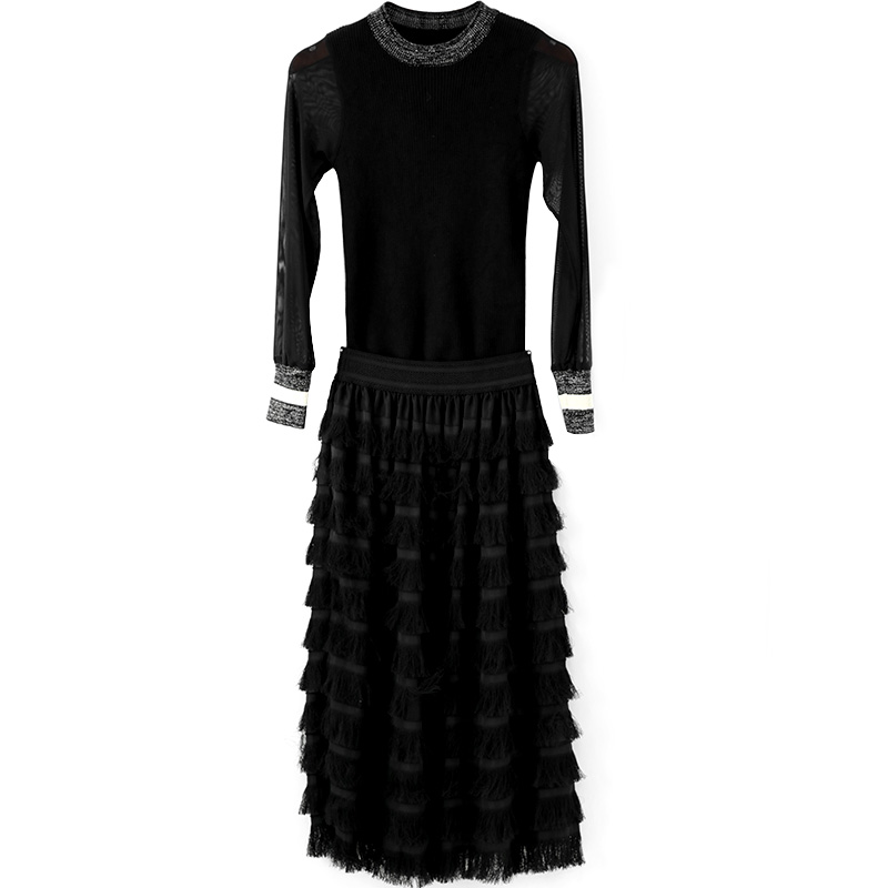2018秋冬季新款女毛衣針織衫裙子蛋糕半身連衣裙網紅兩件時尚套裝